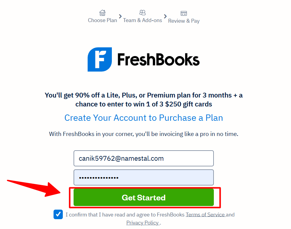 Step 1: Visit FreshBooks' official website with this discount link.