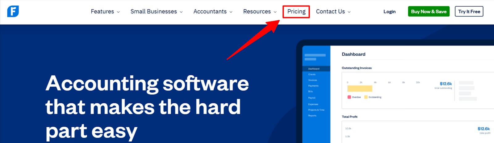 Step 2: Next, click on the pricing tab from the top navigation bar to see the available FreshBooks plans.